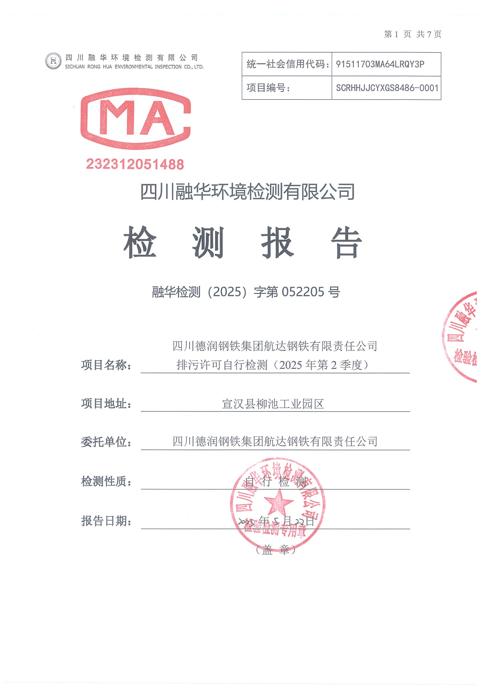 首页 > 新闻资讯 > 集团要闻 > 德润航达钢铁2025年2季度自行检测报告