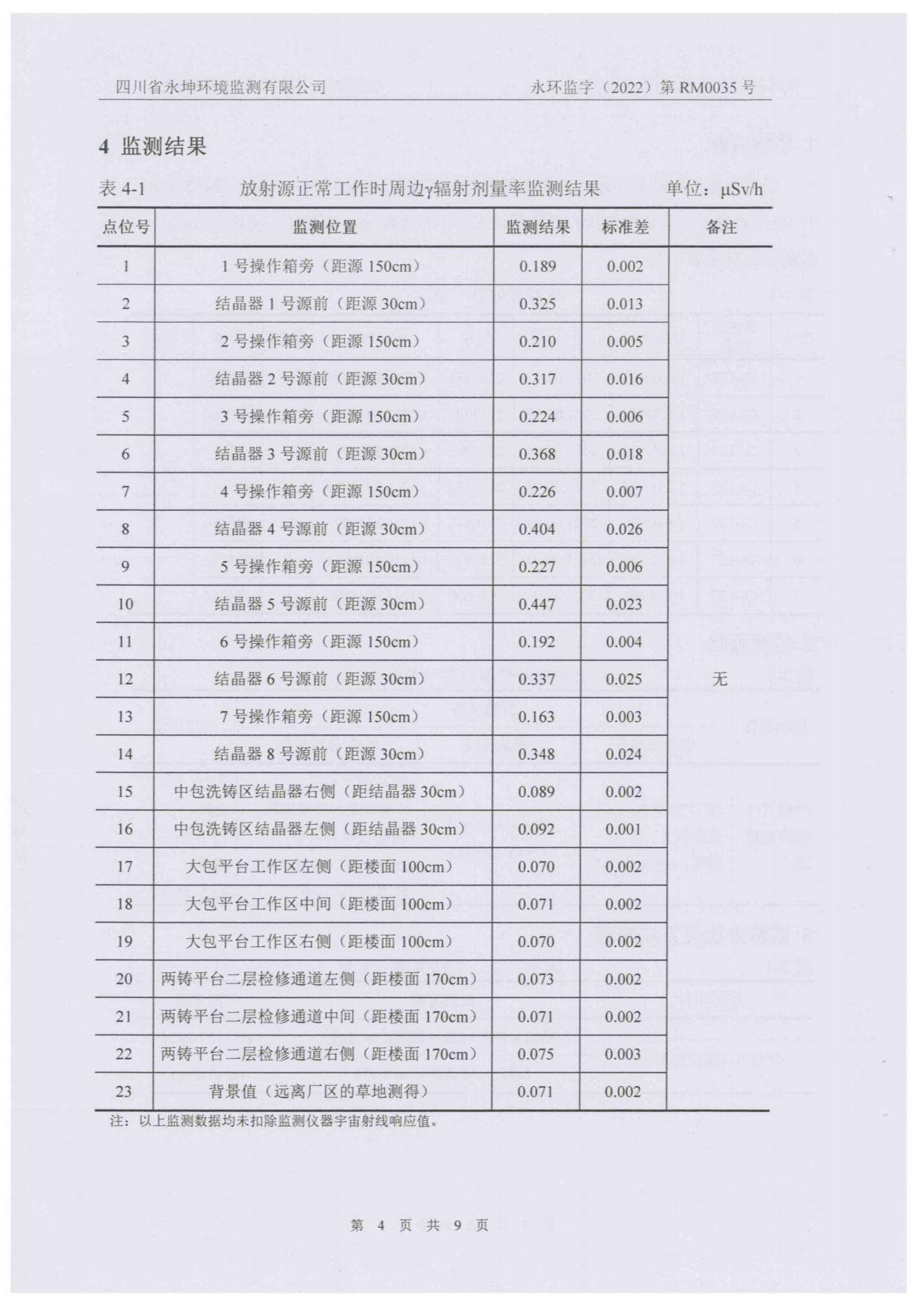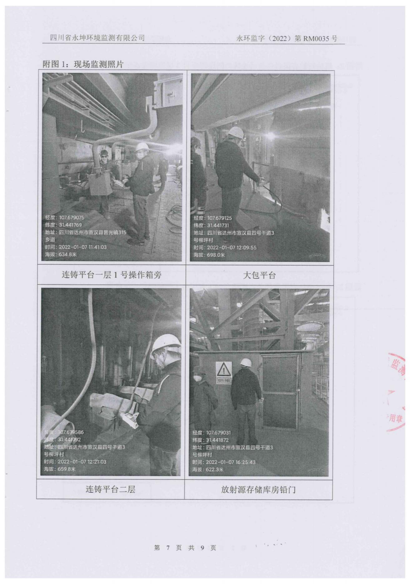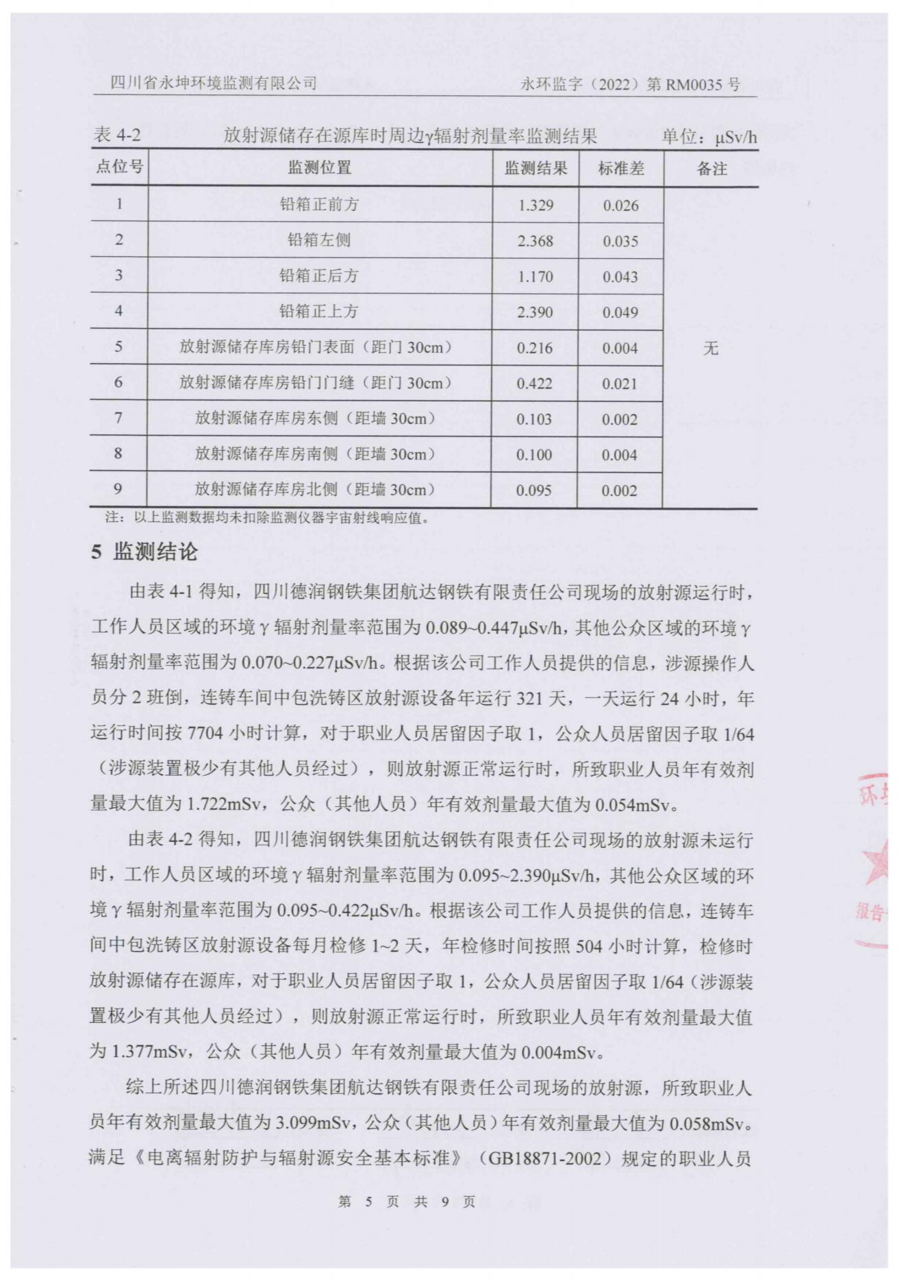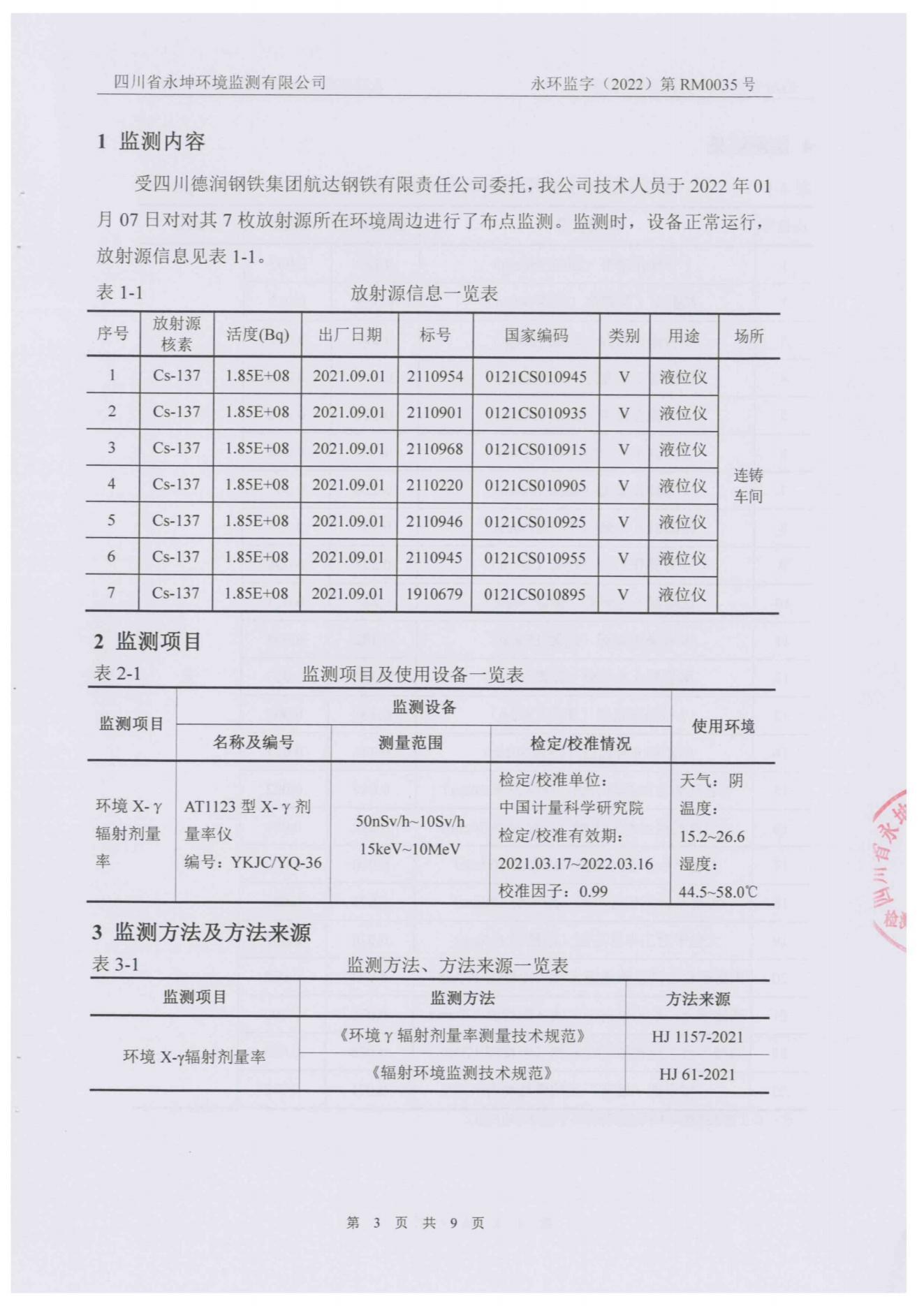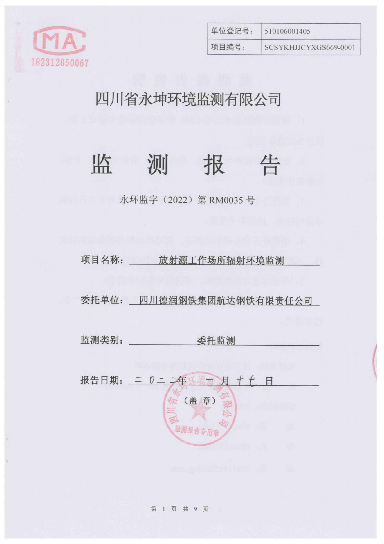 航达钢铁2022年一季度放射源工作场所辐射环境监测信息公开
