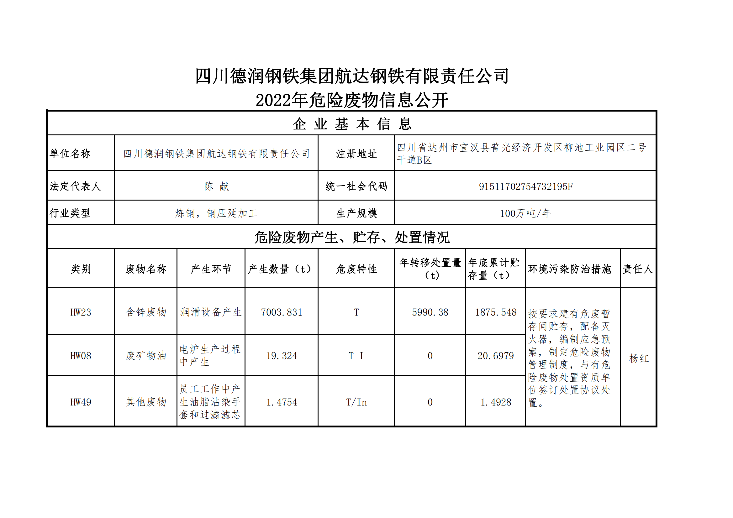 首页 > 新闻资讯 > 集团要闻 > 航达钢铁2022年危险废物信息公示