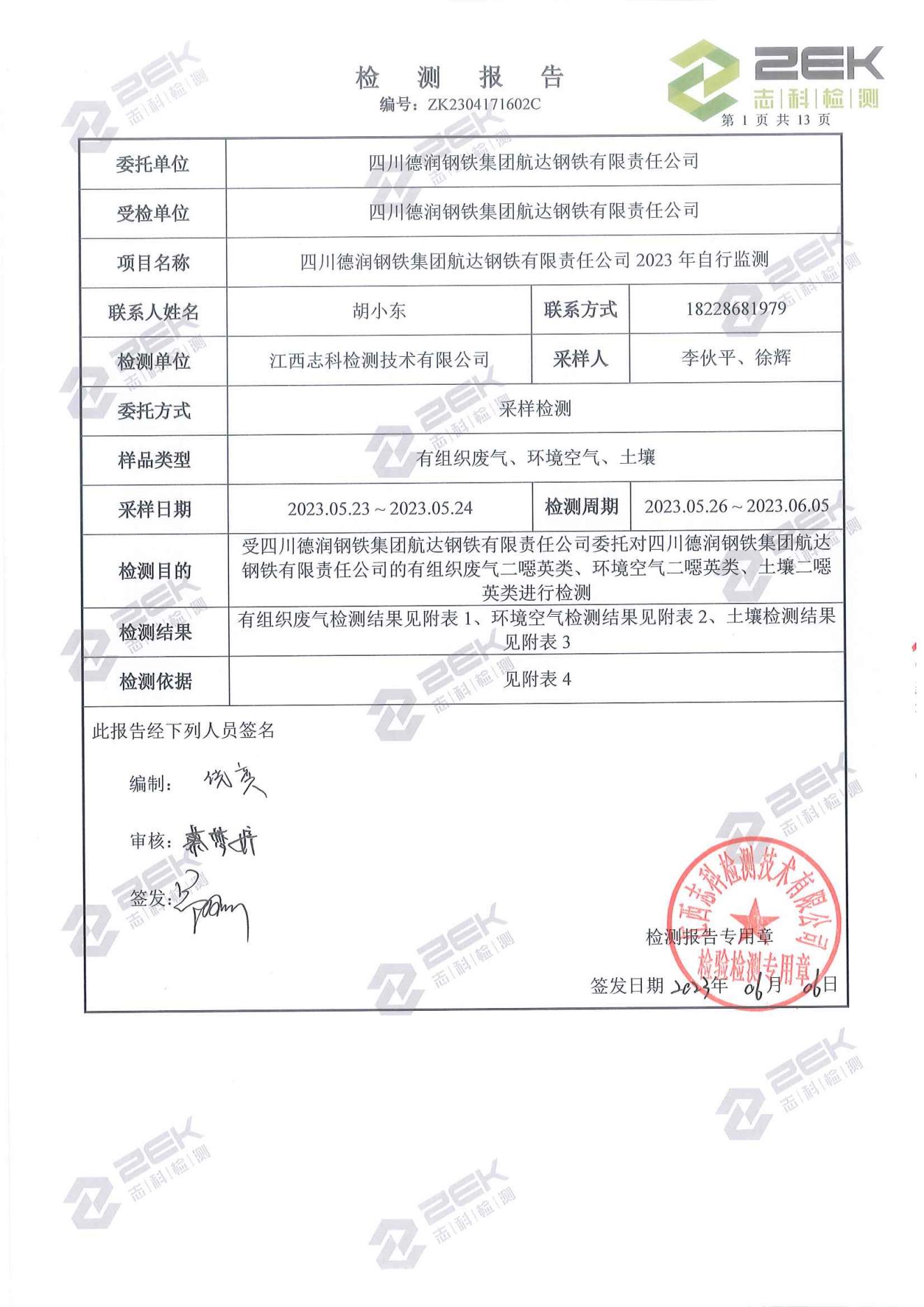 首页 > 新闻资讯 > 集团要闻 > 航达钢铁2023年二季度自行检测报告(2)