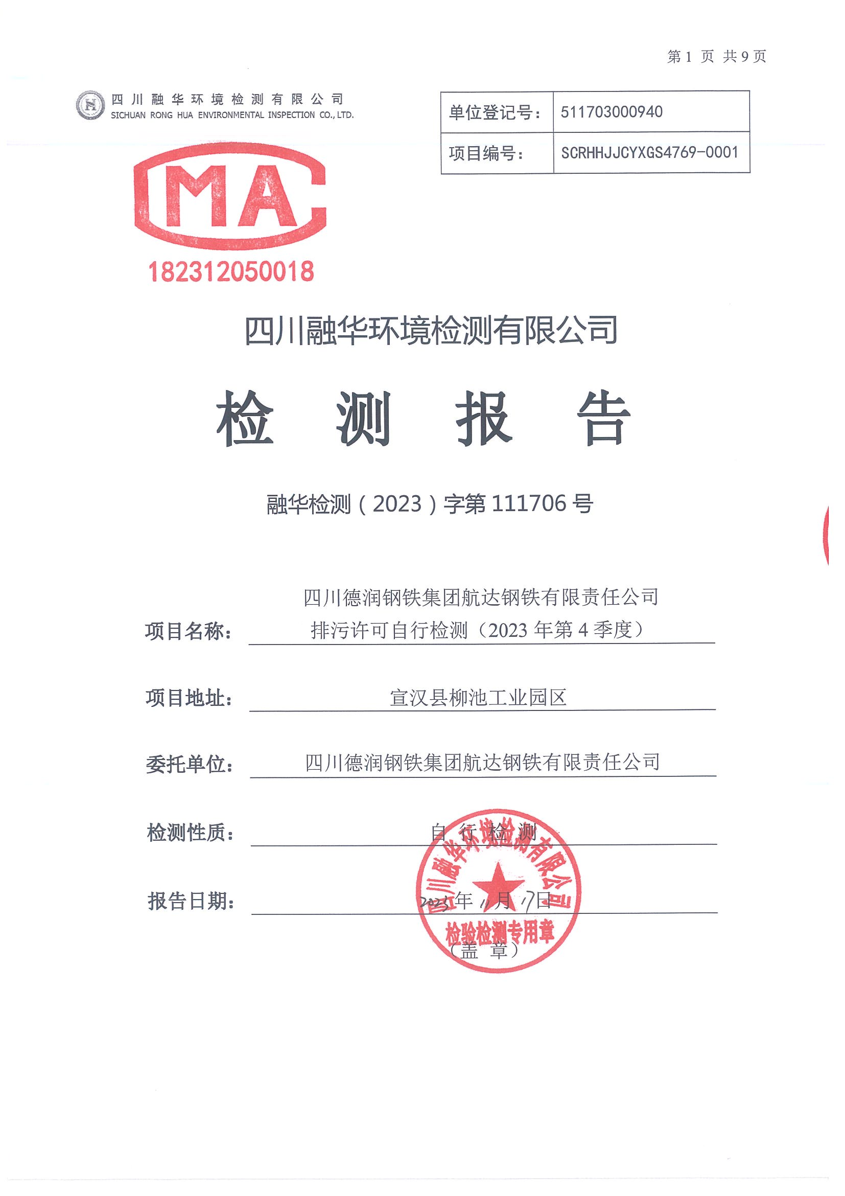 首页 > 新闻资讯 > 集团要闻 > 航达钢铁2023年四季度自行检测报告(1)