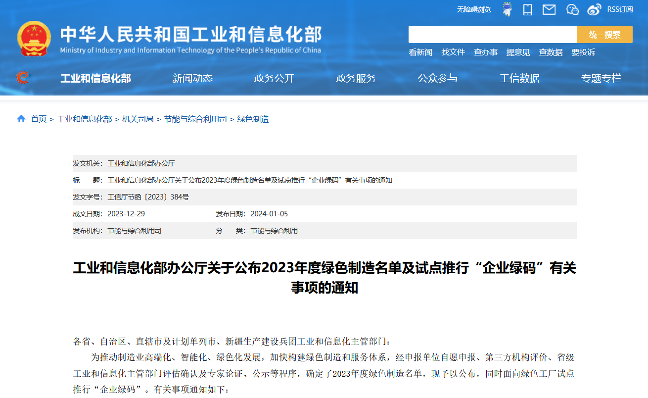 国家级绿色工厂是由国家工信部组织开展的全国性评选活动,是针对符合“绿色发展”企业给出的权威认定,旨在完善我国绿色制造体系,全面推行绿色制造,助力工业领域实现碳达峰、碳中和目标。最终,经申报单位自愿申报、第三方机构评价、省级工业和信息化主管部门评估确认及专家论证、公示等程序,确定了2023年度绿色制造名单。