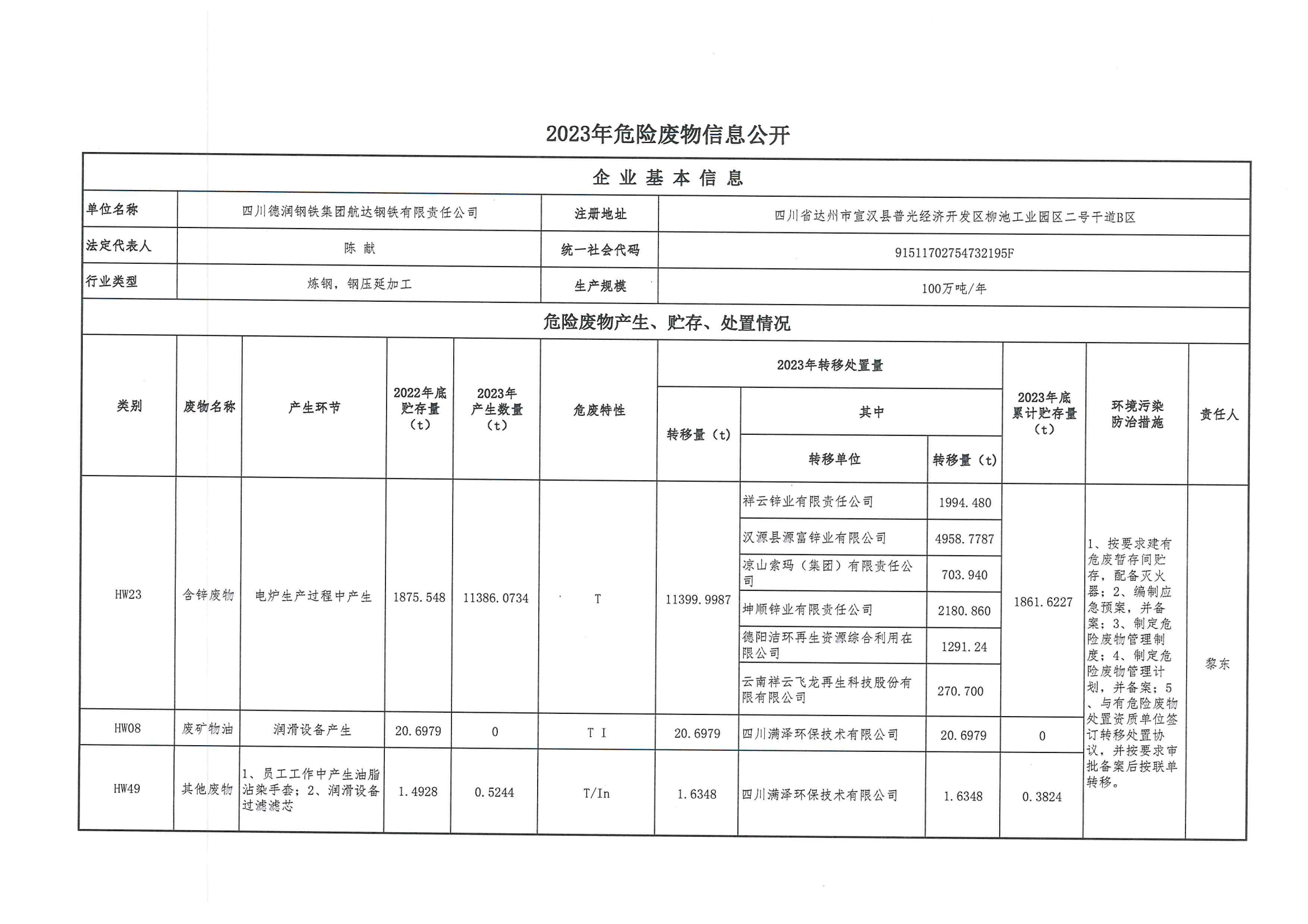 首页 > 新闻资讯 > 集团要闻 > 航达钢铁2023年危险废物信息公开